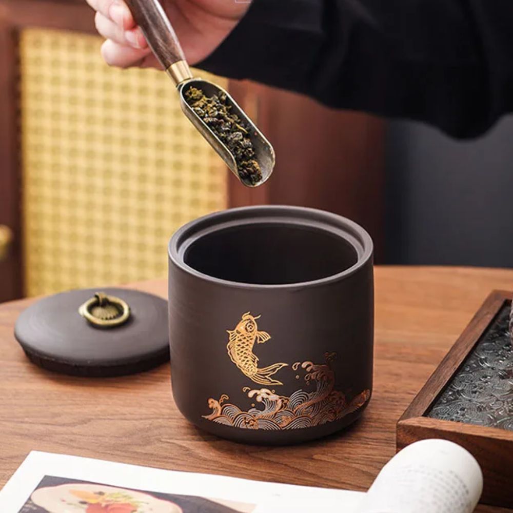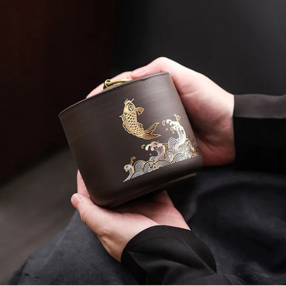 Boîte à thé en céramique – Motif poisson doré ou cerf