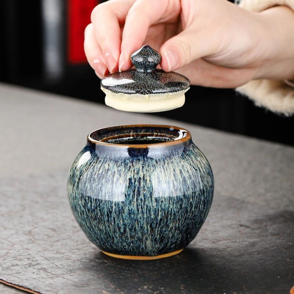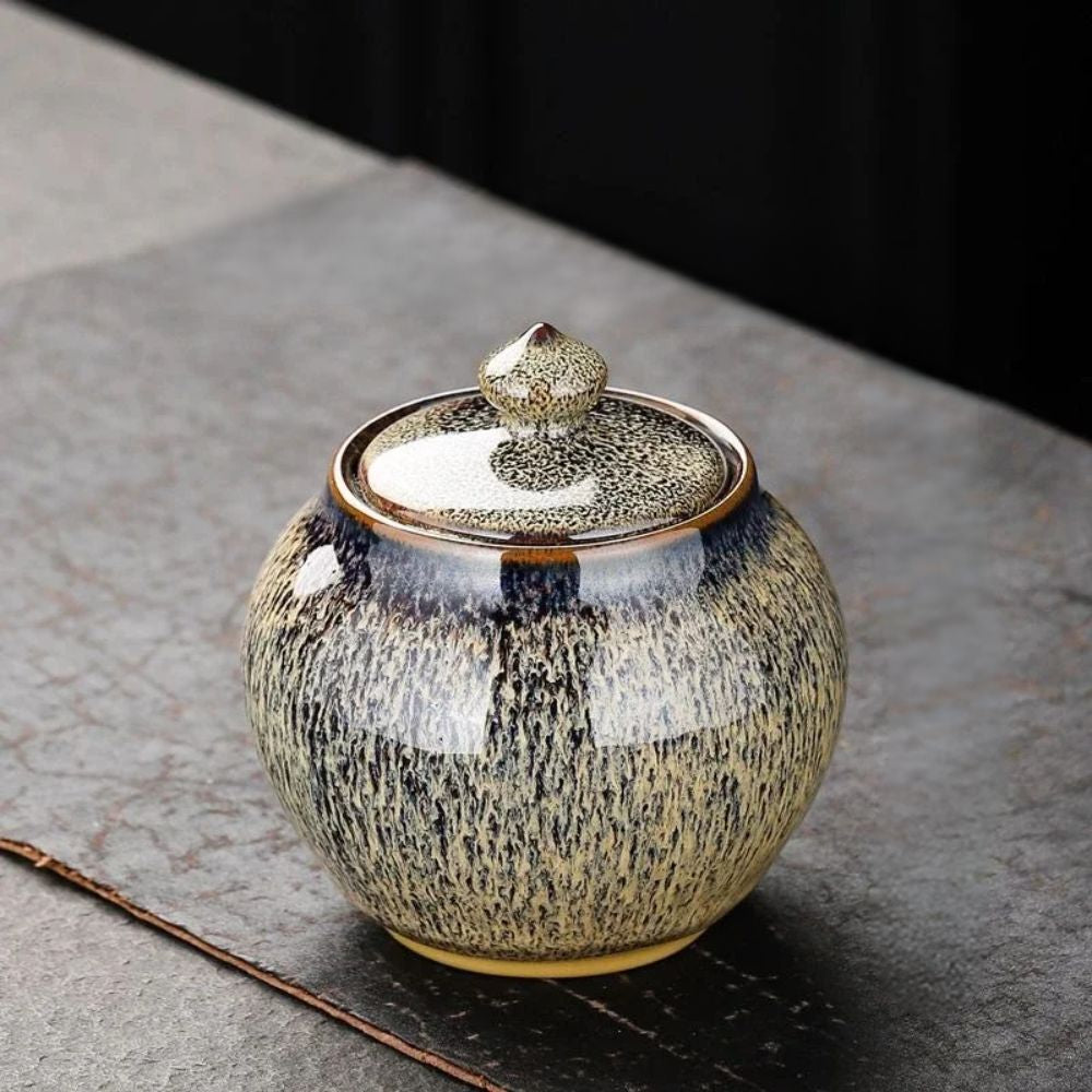Boîte à thé en céramique texturée bocal hermétique décoratif