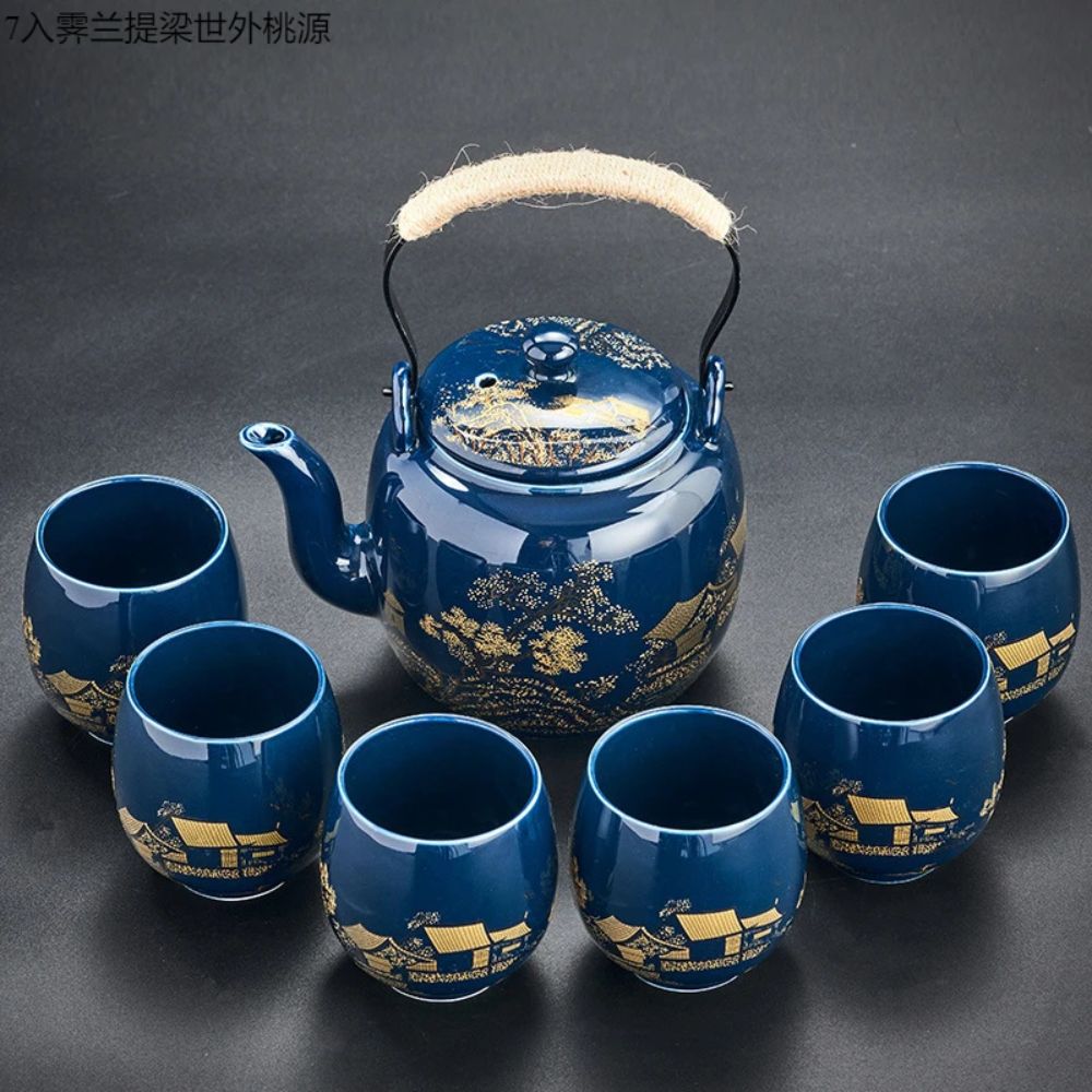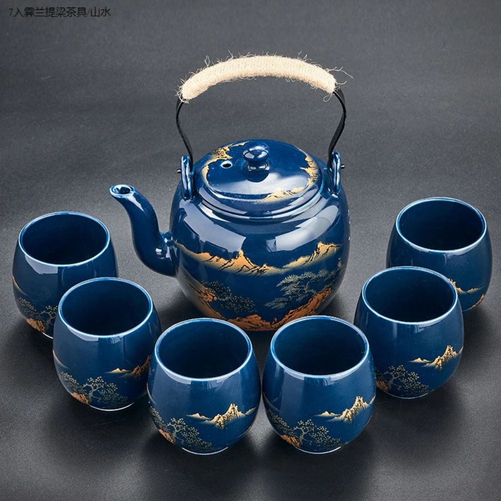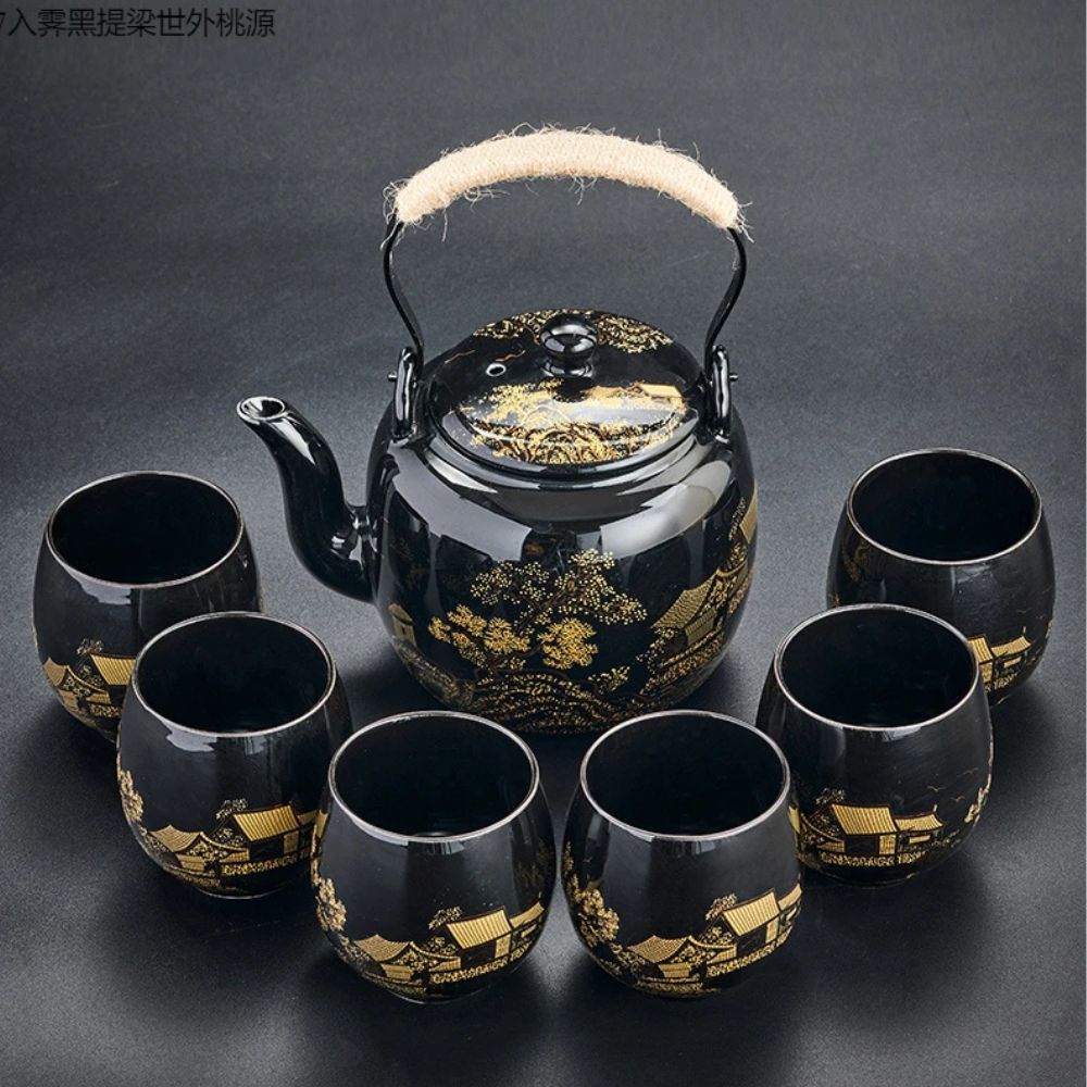 Apportez une touche d’élégance à vos dégustations avec ce service à thé noir en porcelaine émaillée. La théière de grande capacité (820 ml) est équipée d’un filtre inox amovible pour une infusion propre et maîtrisée, tandis que sa poignée en fonte gainée de corde offre confort et authenticité. Les six tasses assorties (180 ml) complètent ce coffret raffiné, idéal pour partager vos thés préférés en famille ou entre amis.