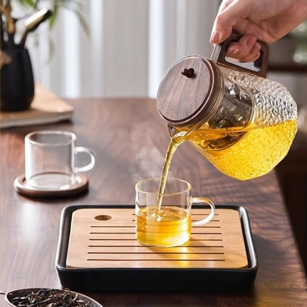 Alliant design moderne et praticité, cette théière en verre borosilicate est dotée d’un couvercle magnétique en noyer et d’un filtre en acier inoxydable 304. Son ingénieux mécanisme de pression permet de stopper l’infusion au moment idéal, garantissant une boisson parfaitement équilibrée. Compacte et élégante, elle est idéale pour les dégustations individuelles ou à partager à deux.